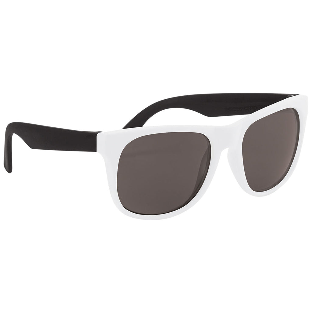 Add your custom name or design to the Hit White/Black Rubberized Sunglasses to keep people protected and your brand prominent. The multiple colorful options will be a Hit for vacation, travel, and general use. Great for seasonal shops, vacation rentals, gifts, or prizes for special events. The rubberized glasses are tough for long term wear.