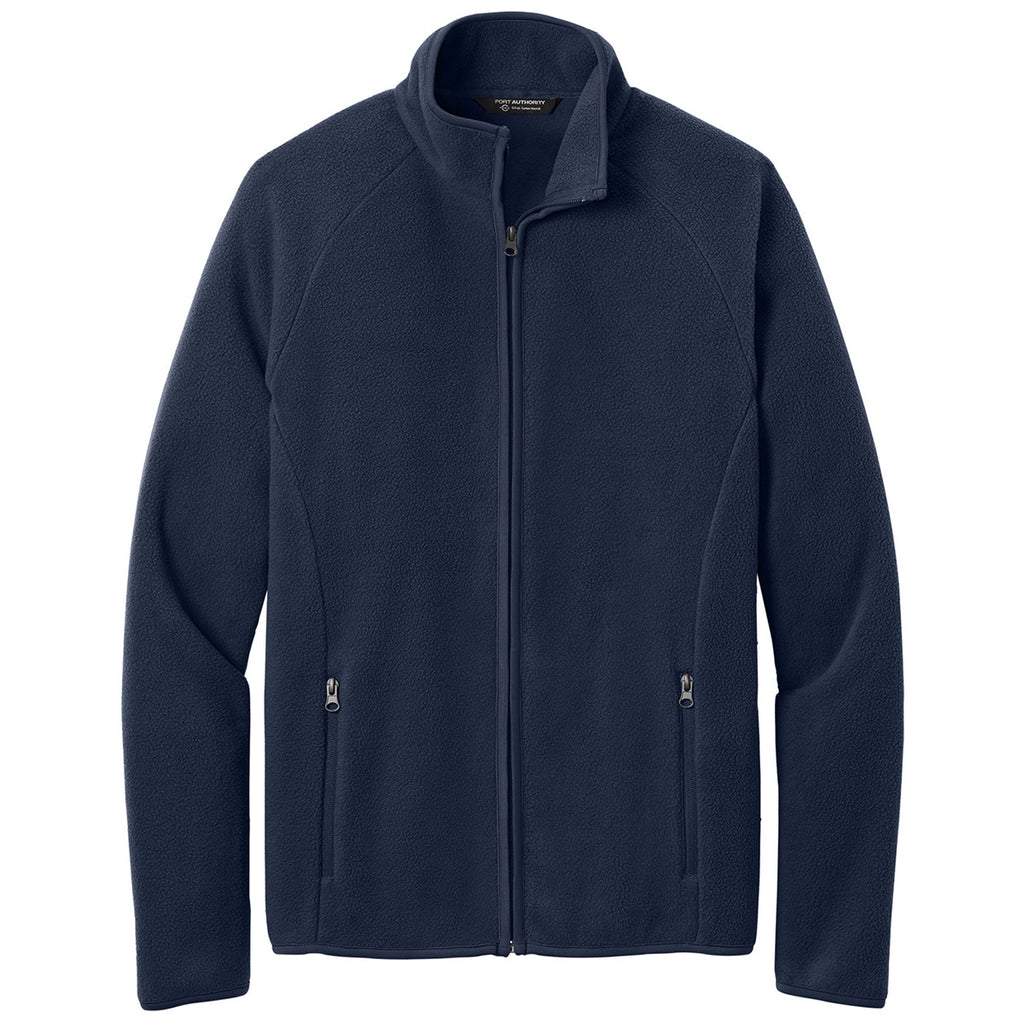 Choose a corporate logo for the Port Authority Men's True Navy C-FREE Raglan Fleece to make sure your customer-facing employees look and feel great. The mid-weight polyester fleece has a zip-through cadet collar, making it easy to layer, and raglan sleeves for mobility. Great for those who need to work in homes or outdoors.Highlights