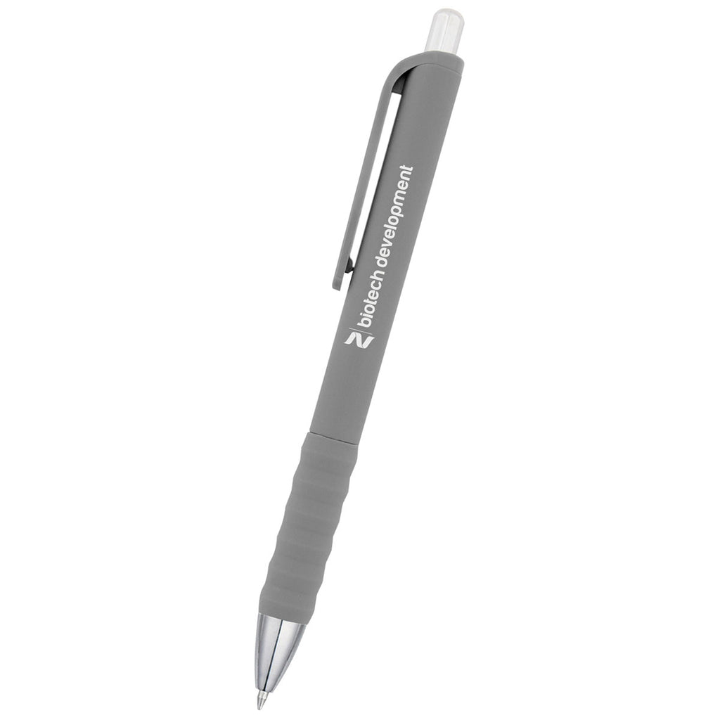 Write in style with a custom logo on the Hit Grey Ripple Gel Pen. The plunger action pen is a staple for many offices, schools, and organizations, so why not showcase your brand on the smooth rubberized finish? Perfect to stock your supply cabinet or create something unique for your shop.