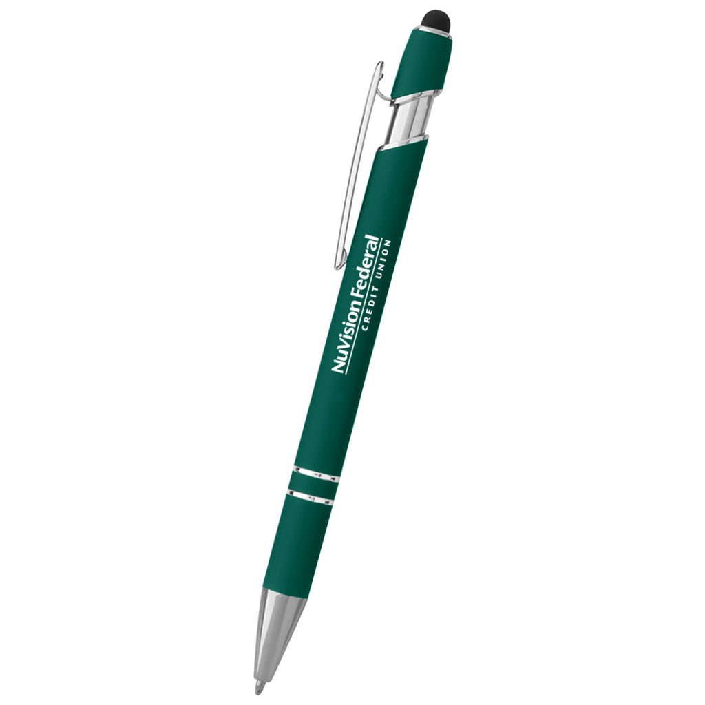 Hit Green Incline Stylus Pen with a corporate logo comes in a variety of colors to fit your supply needs. The stylish pen serves the dual purposes of writing and serving as a stylus while coming in a convenient gift pouch for easy gift-giving. Great for new clients, graduations, or special events while networking.