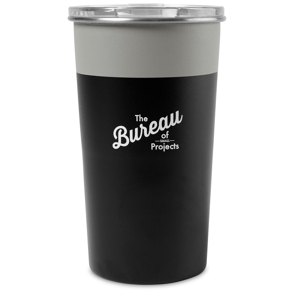 A stylish two-toned design sets the Gemline Warm Grey/Black Arlo Colorblock Stainless Steel Tumbler - 20 oz. apart in the best way possible. Perfect for highlighting your company's custom logo or design, it features a stainless steel exterior and fits in most car cup holders for added convenience during travel.