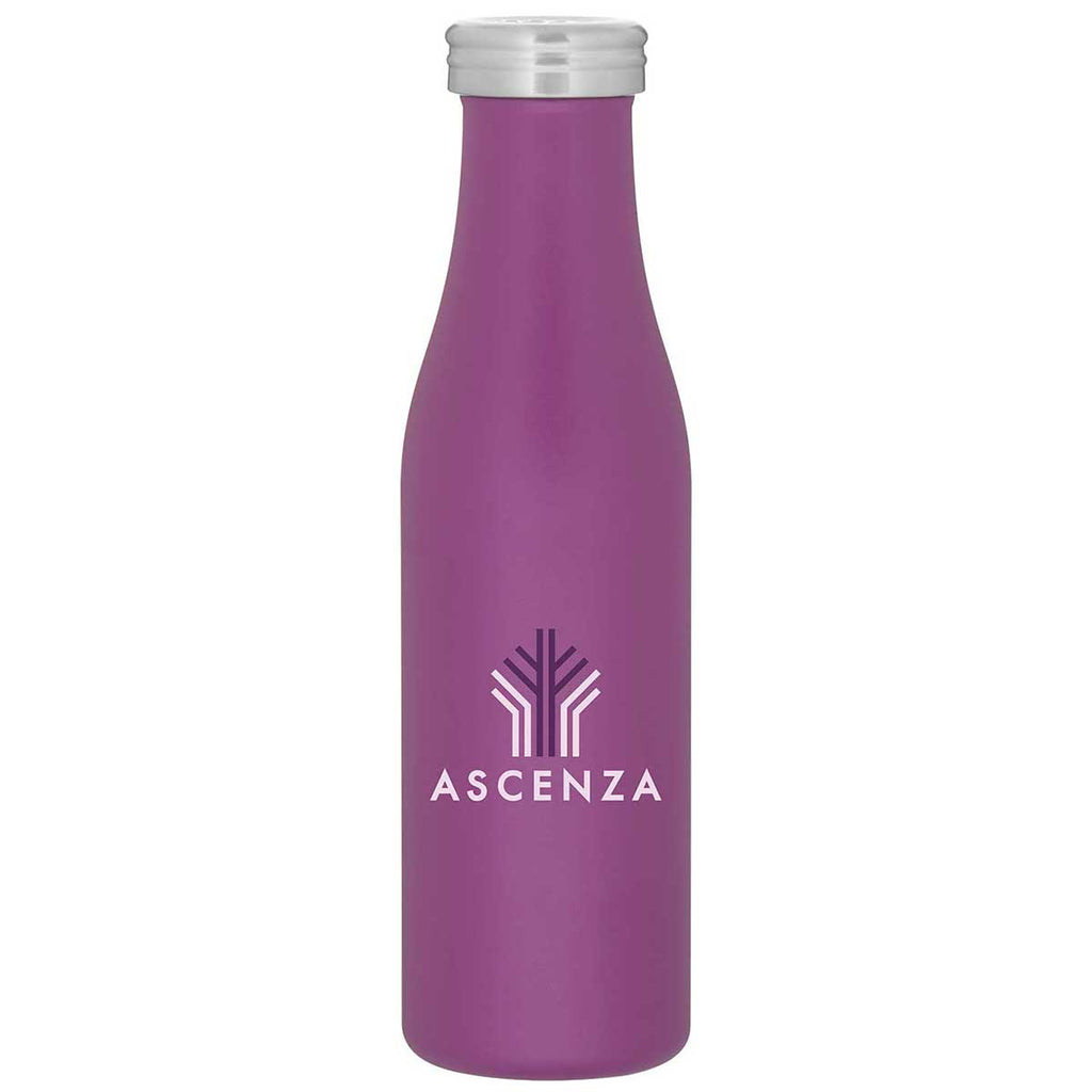 The custom H2Go Matte Grape 16.9 oz Carina Stainless Steel Bottle's powder-coated finish matches perfectly with printed logos, making the drinkware a great choice if you're looking for customized giveaways for your trade shows, recruitment fairs and company-sponsored events. The Carina uses copper insulation on top of a double wall feature to keep your drinks hot or cold for a longer time without sweating.