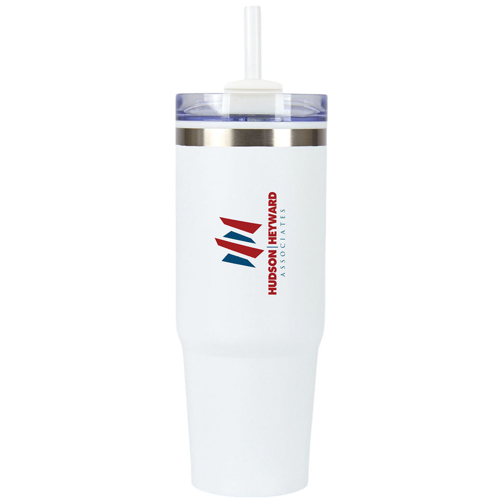 The Logomark White Yesler 30 oz. Double Wall Steel/PP Liner Travel Tumbler is a generous corporate hydration option built to endure. Featuring vacuum insulation, a splash-resistant lid, and large-handle grip, it's perfect for outdoor workers, road warriors, or branded wellness giveaways. This tumbler keeps beverages at ideal temperatures and offers high-visibility logo placement on a versatile vessel.The minimum order for this product is 50 pieces.