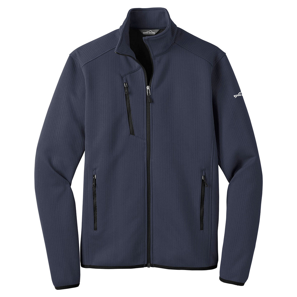 Designed with textured and smooth faced fleece, the custom logoed Eddie Bauer Men's River Blue Dash Full-Zip Fleece Jacket represents the ideal jacket to take with you on business trips. The lightweight fabric does not slow you down when you hustle through airport terminals to catch flights. As opposed to most other styles of jackets, the fleece jacket easily folds and stores inside backpacks and duffel bags. Durable 100% polyester withstands the punishment delivered by bumpy airplane rides, as well as active professionals that like to participate in intense athletic competitions. Add your corporate logo to display for the people you pass by during business travel.
