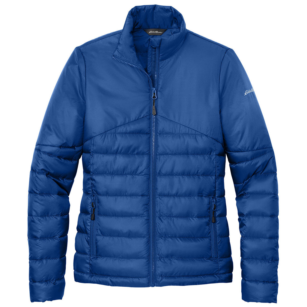 Add embroidery to the Eddie Bauer Women's Cobalt Blue Quilted Jacket for a great cooler weather look that will turn heads. This jacket comes together with minimal bulk yet maximized performance for all your adventures. A perfect choice for snowboarding, skiing, or other outdoor fun. Place an order today.This product can only ship within the United States, Puerto Rico, Canada, and Mexico.