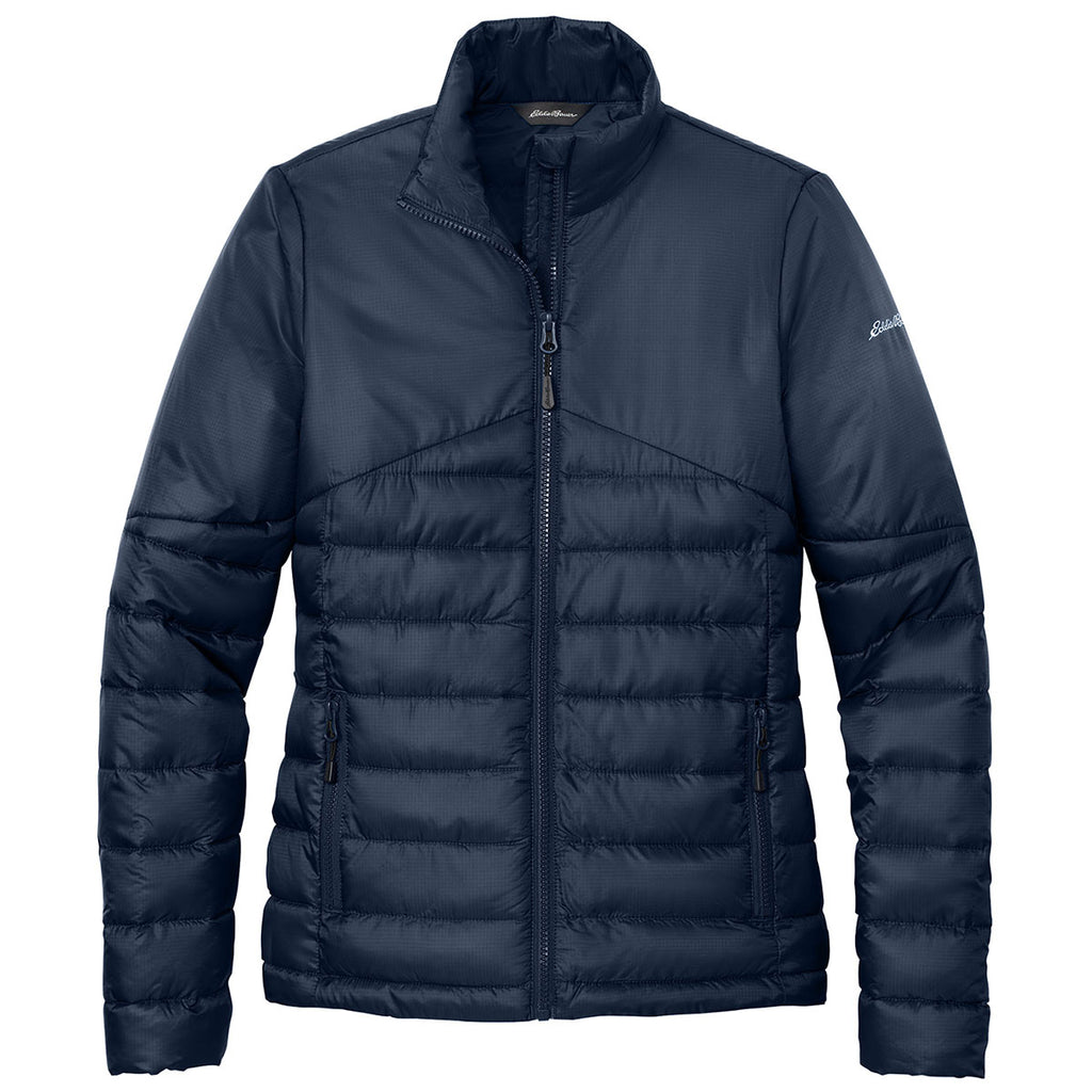 Add embroidery to the Eddie Bauer Women's River Blue Navy Quilted Jacket for a great cooler weather look that will turn heads. This jacket comes together with minimal bulk yet maximized performance for all your adventures. A perfect choice for snowboarding, skiing, or other outdoor fun. Place an order today.This product can only ship within the United States, Puerto Rico, Canada, and Mexico.
