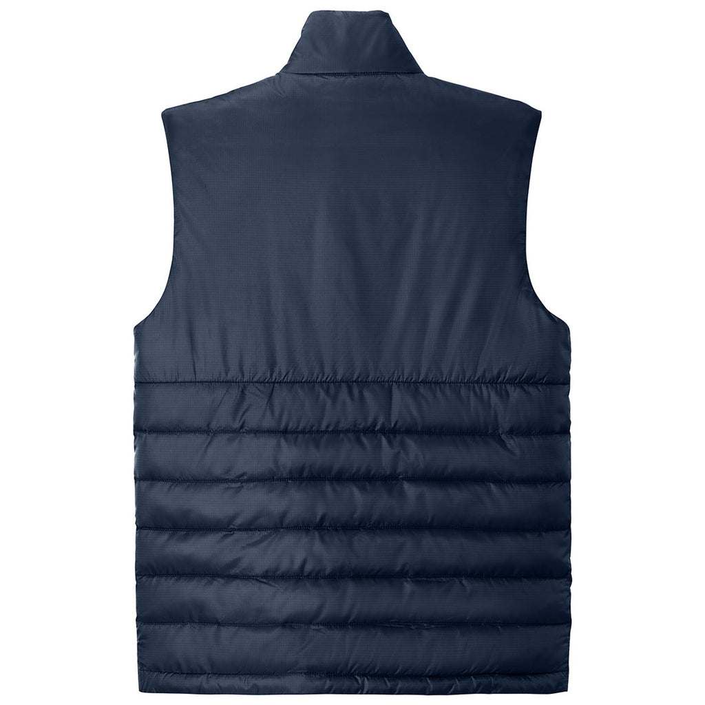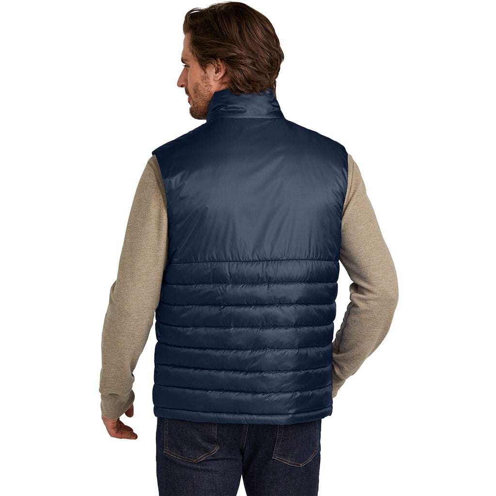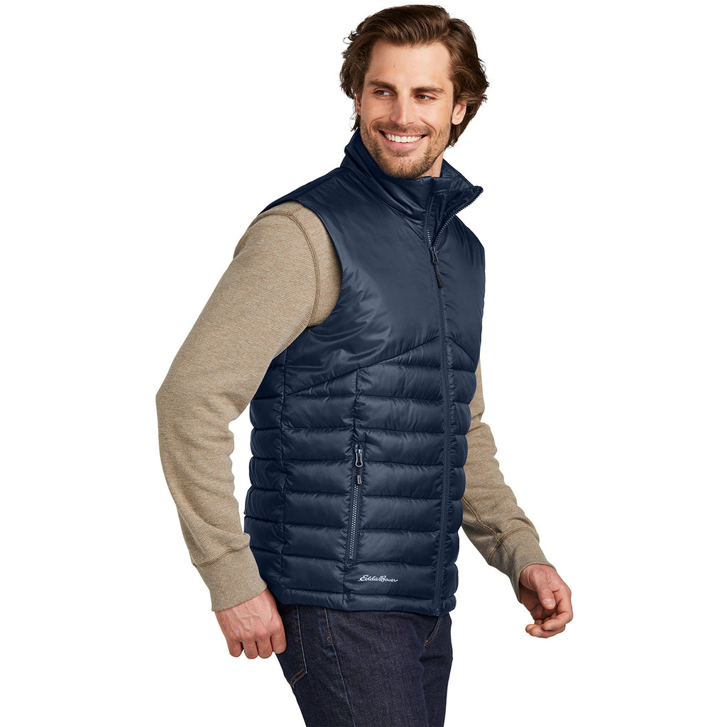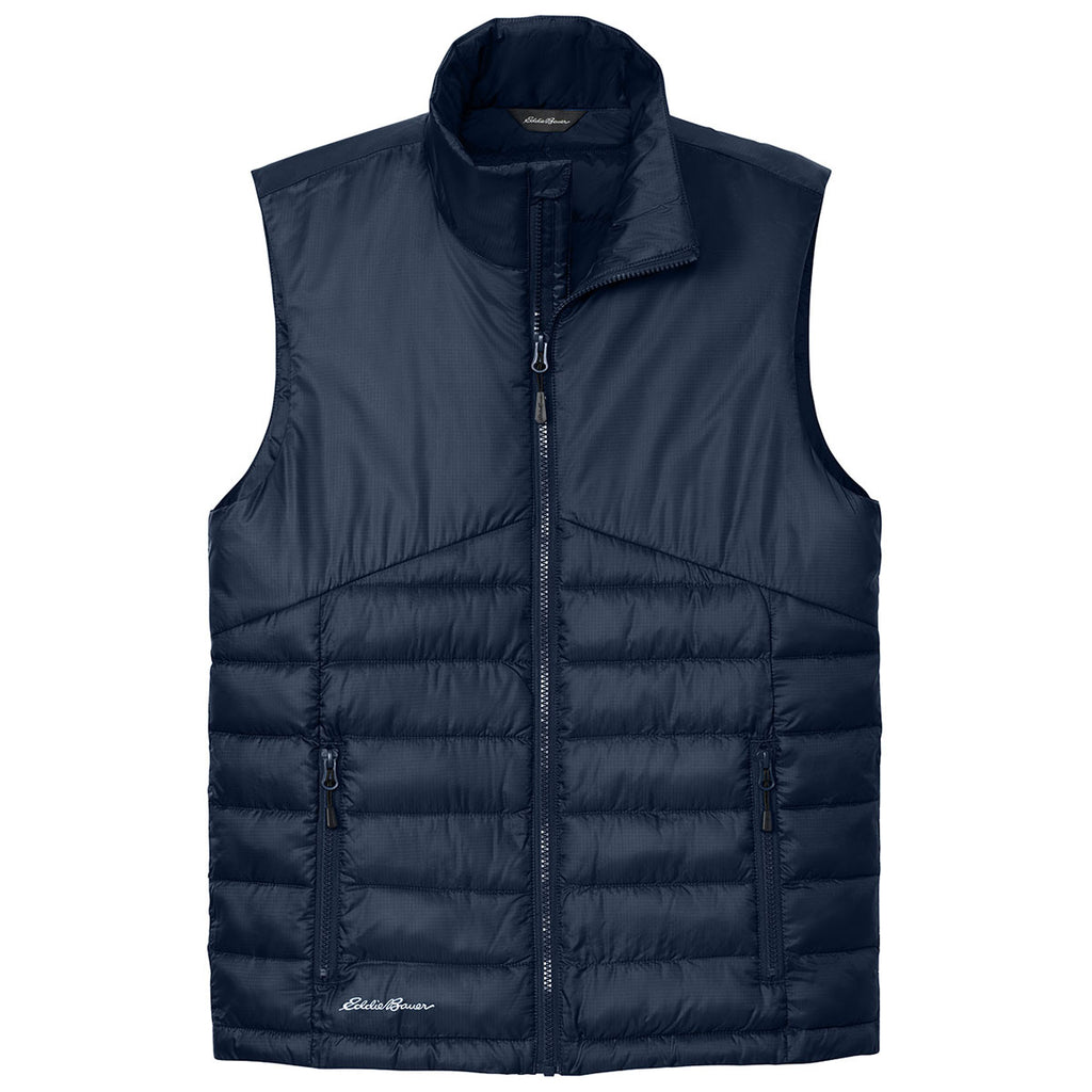 Add your custom logo to the Eddie Bauer Men's River Blue Navy Quilted Vest for a performance layer that is ready for all your outdoor adventures. Whether mountain climbing, skiing, or just enjoying cooler weather, this vest can be worn as an outer or middle layer with ease. Water repellant, quilted, and not bulky, this is a must-have. Place an order today.