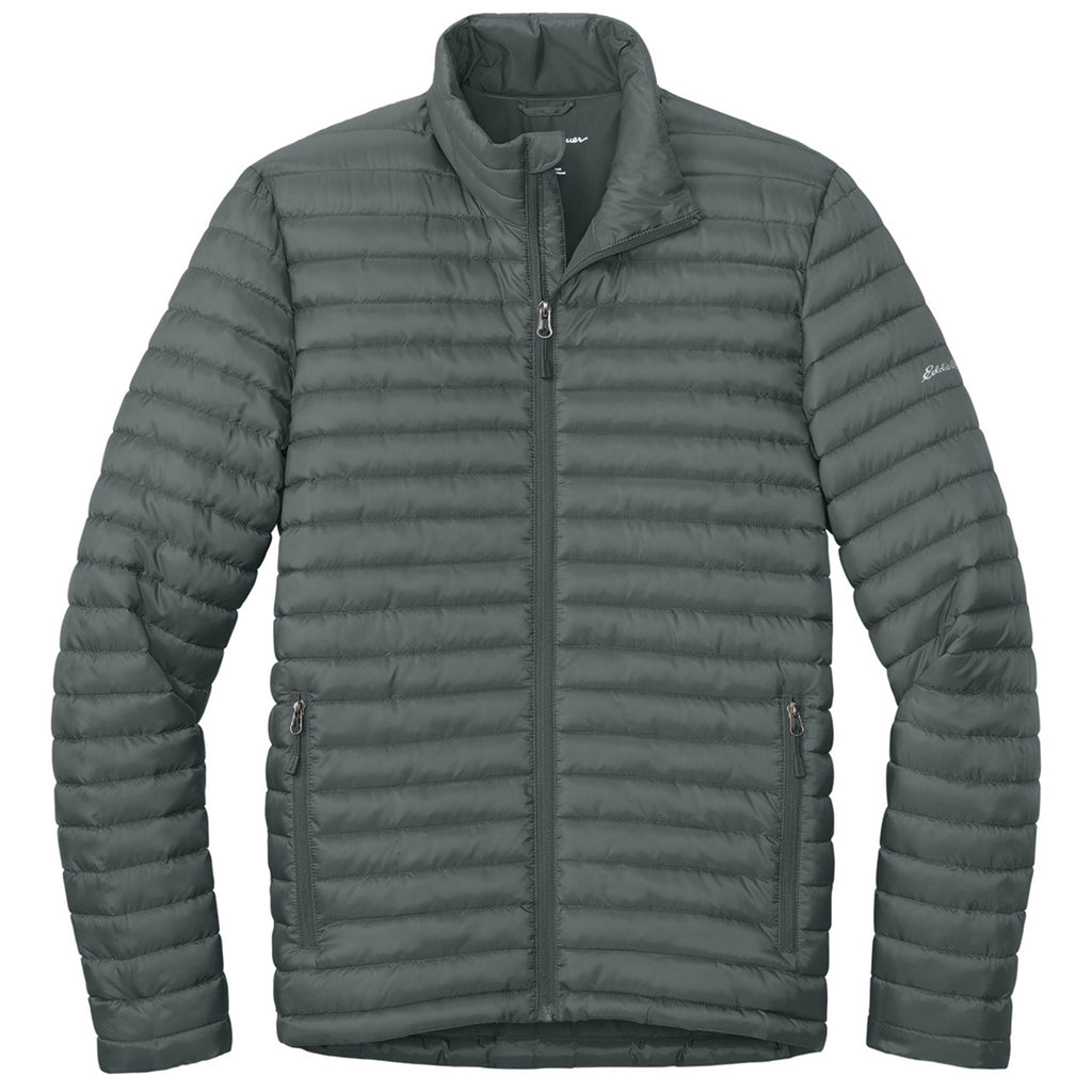 Eddie Bauer Men's Metal Grey Packable Quilted Full-Zip with a corporate logo will be an instant hit with buyers and wearers. The high-end jacket, with quilted lines in a traditional pattern, is warm without being bulky. The weather-resistant performance makes this great for outdoor work or play, no matter the weather conditions.This product can only ship within the United States, Puerto Rico, Canada, and Mexico.