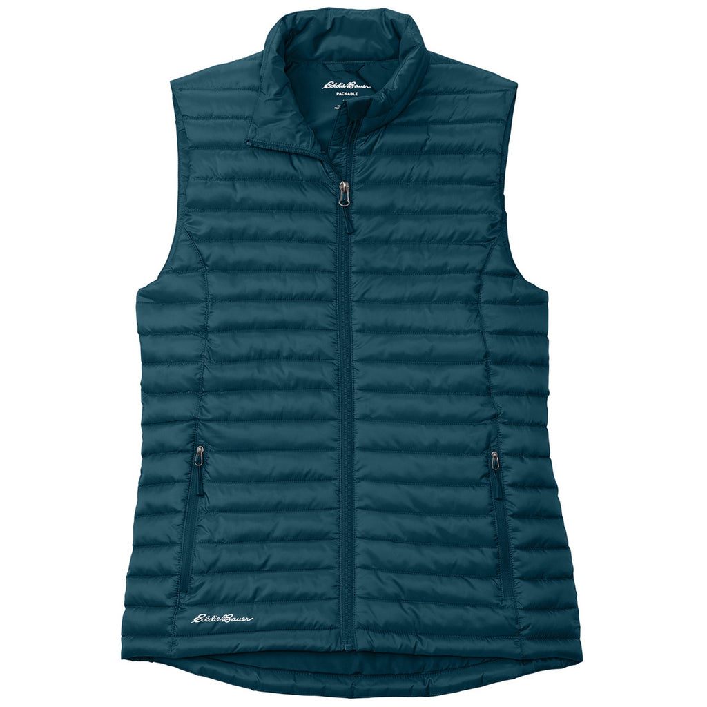 Eddie Bauer Women's Adriatic Blue Packable Quilted Vest with a custom logo is a must-have for the adventurers in your life. Made for warmth and weather-resistant performance, this vest packs into its own left pocket when not in use. Ideal for hiking, biking, jogging, and more. Place your order now before supplies run out.This product can only ship within the United States, Puerto Rico, Canada, and Mexico.