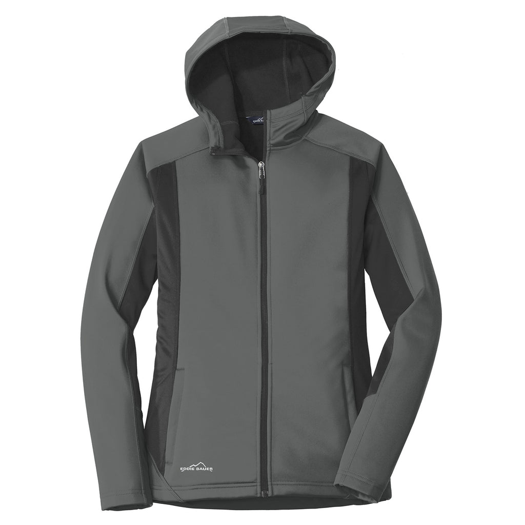 Give the logoed Eddie Bauer Women's Metal Grey/Grey Steel Trail Soft Shell Jacket to each member of your successful team. The sleek embroidered corporate gift includes a large imprint area to attach your corporate logo. Designed with 100% rugged polyester knit shell and DWR coating, the jacket also receives a water-resistant laminated film to prevent Mother Nature from dampening your day. The micro fleece brushed interior feels smooth to keep you feeling fresh all-day long. Attach the hood to bundle up when the weather takes a turn for the worse. Your team will appreciate having a jacket that they actually want to wear both to the office and after hours.