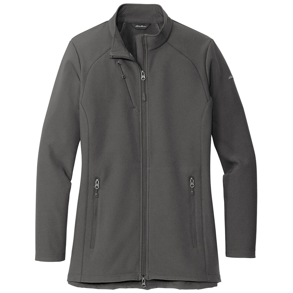 The Eddie Bauer Women's Iron Gate Stretch Soft Shell Jacket is a great all-weather jacket. Keep warm with soft fleece lining on a chilling day. The polyester/spandex material blend provides ease of movement for the active day. Create a custom jacket by adding a logo on the chest and broadly display any brand.