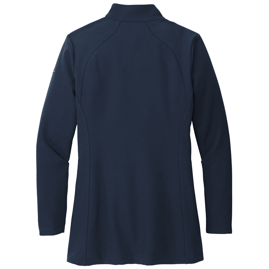 The Eddie Bauer Women's River Blue Navy Stretch Soft Shell Jacket is a great all-weather jacket. Keep warm with soft fleece lining on a chilling day. The polyester/spandex material blend provides ease of movement for the active day. Create a custom jacket by adding a logo on the chest and broadly display any brand.