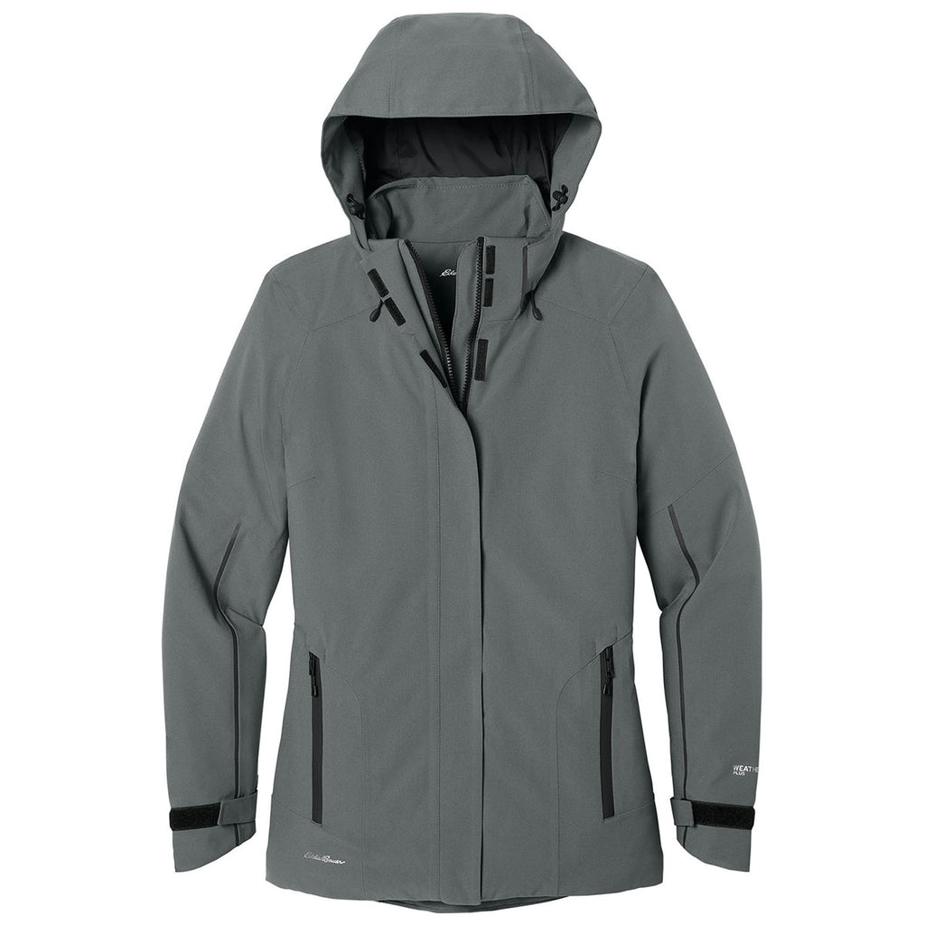 Manufactured to outlast the worst weather, the embroidered Eddie Bauer Women's Metal Grey WeatherEdge Plus Insulated Jacket gives you the edge over Mother Nature. The fully seam-sealed technical jacket scores high on the waterproof and breathability scales. Trademarked WeatherEdge technology includes proprietary Storm-Repel water repellent to add an additional layer of protection against harsh weather. Fully insulated to keep you warm, the ladies jacket comes with an interior pocket to store electronic devices. All of this adds up to a jacket that keeps you warm and comfortable all day long. Attach a custom logo on the large imprint area to spread the word about your products and services at industry trade shows.