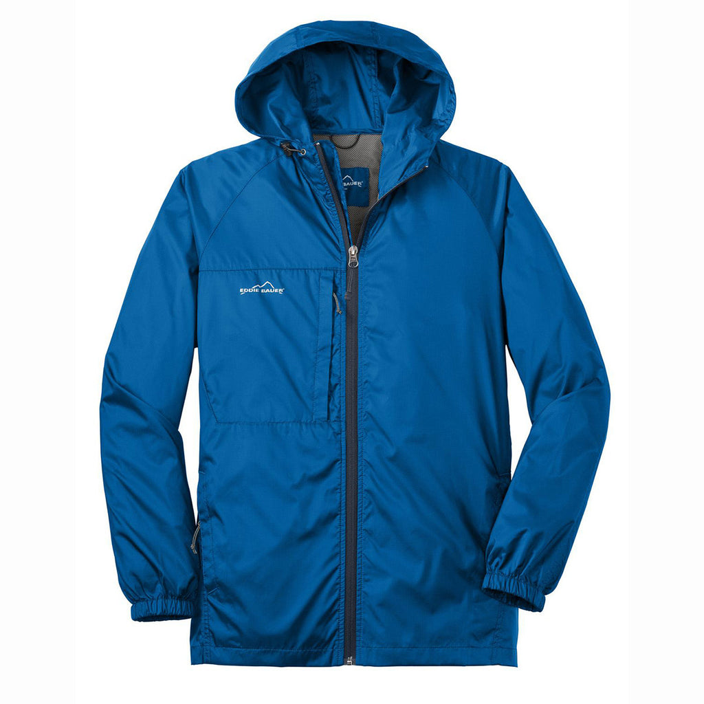 If you want to talk about functional' wind jackets, then the conversation should start here. Eddie Bauer Men's Brilliant Blue Packable Wind Jacket isn't just about the function of protecting you from the wind'even though it does a stellar job of that. But the fact that it can pack down into the size of a pocket ensures that this isn't just the wind jacket for all seasons, but the wind jacket for all situations. It has all the frills'reverse coil zippers, underarm vents, a packable zippered chest pocket'but does it all while being the most travel-friendly jacket imaginable. With a custom corporate logo on the front, you can give your employees instant travel-ready gear with one essential item.