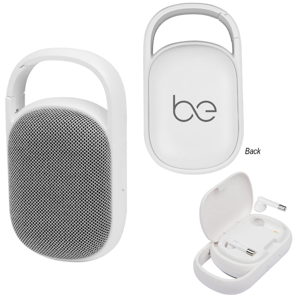 Hit White with Grey Wireless Earbuds with Speaker & Charging Case showcasing your corporate logo is a fun way to get attention. Who doesn't love sharing their music and listening to it easily when needed? These wireless earbuds and Bluetooth speakers work with most devices to keep the party going and take calls when needed. Give as gifts or sale as part of a promotion.