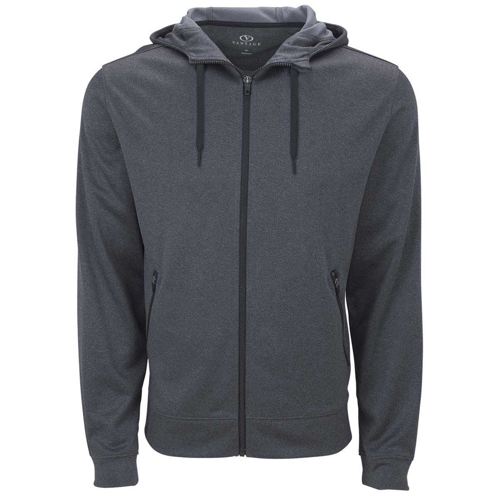 Play, train, or commute to work in a custom embroidered Vantage Men's Dark Grey Street Hoodie. A creative 100% polyester full zip hoodie with a company logo will be the choice of apparel for company uniforms or daily wear. Perfect for golf events when the weather is not the best, this comfy brushed back fleece hoodie allows for range of movement and ideal fit. Available in three classic colors, your custom logo and design will stand out. Zippered pockets allow for small items to be secured whether you are going for a jog or heading out to work.Corresponding Women's Style: Vantage Women's Dark Grey Street Hoodie