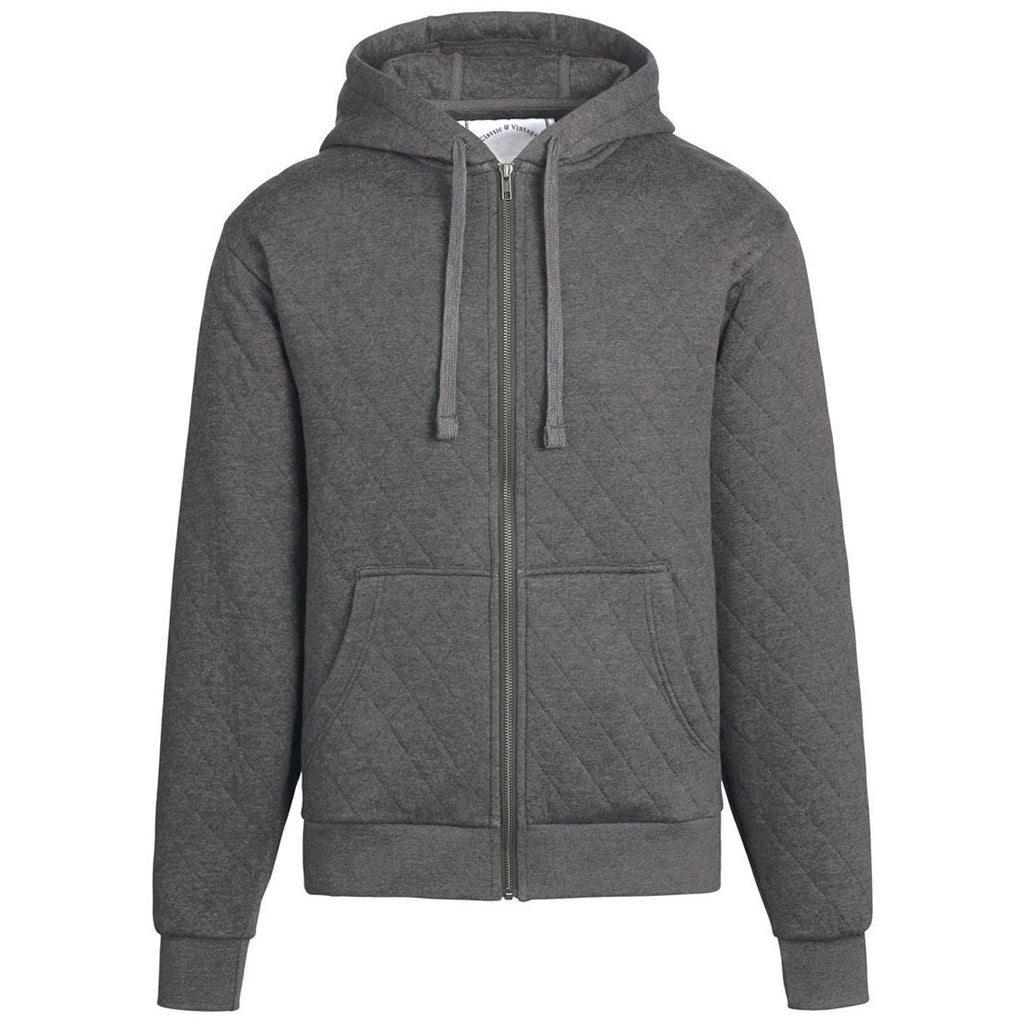 Enjoy an embroidered custom look with the Landway Men's Heather Grey Kingsley Quilted Fleece Hoodie. The Kingsley combines a relaxed fit, insulated design, and vintage details for a fun and fashionable look that is great for a morning commute or an evening hanging out with friends. Add a company logo to use as part of employee apparel for those who work outdoors or as employee gifts for any occasion. Try a custom logo on this full zip hoodie for a look that will fly off shelves. Place an order to make sure this hoodie is part of your logoed apparel line as soon as possible.Highlights