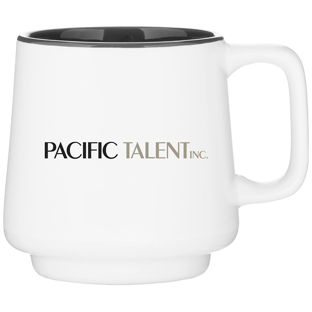 Your printed logo will be the star on the ETS Storm Grey Windsor 12 oz Mug with your choice of solid white interior or accent color. The 12 oz mug with slightly wider base means the cup is secure as you enjoy your tea, coffee or other choice of beverage. Add a company logo to stock your store, hotel, or restaurant with multiple copies of this mug that will help people know and recognize your brand. Ideal as a gift for friends or as an employee appreciation gift that can be used daily. Design a custom logo to place on the mug to giveaway at an event or trade show. Place an order today.