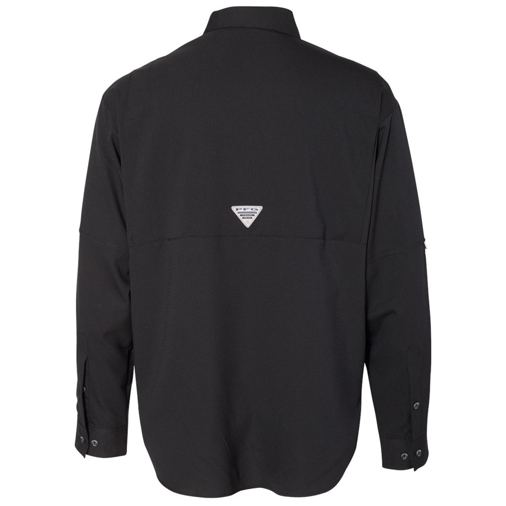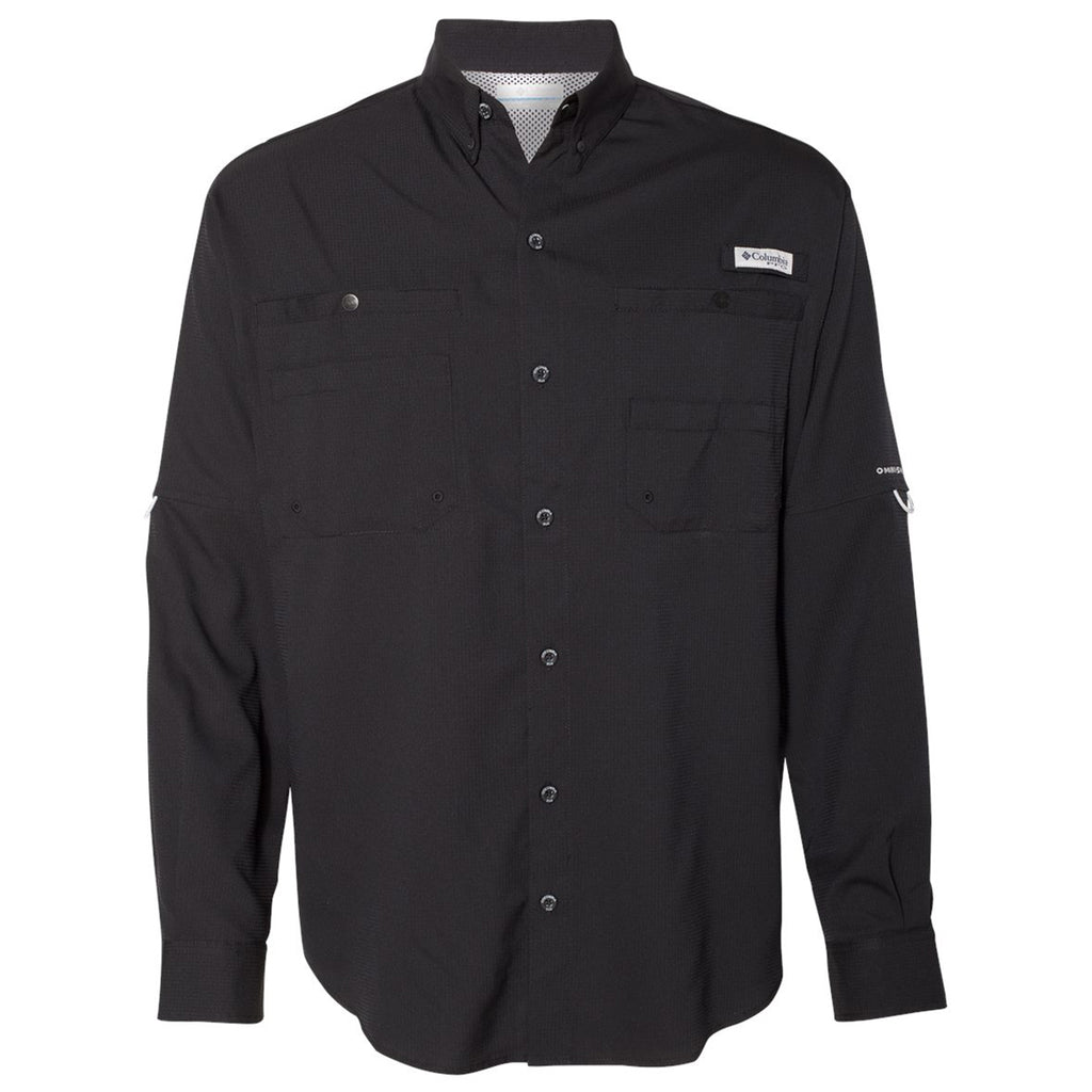 Create a corporate logo for the Columbia Men's Black PFG Tamiami Long Sleeve Shirt. This all-around polyester ripstop shirt offers Omni-SHADE UPF 40 sun protection, Omni-WICK quick dry, and roll-up sleeves to wear year-round as you work your hardest or enjoy the Great Outdoors using the built-in rod holder.This product cannot ship outside of the United States.