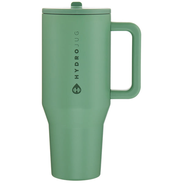 The custom HydroJug Sage 40oz Traveler mug is the perfect size for daily use. The thermal mug has copper vacuum insulation, a threaded lid, and a matching flip-up spout with soft straw and wide handle. Choose the color that best fits your design and order for friends, family, or clients or to add to your logoed line.Highlights