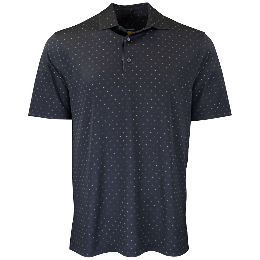 Greg Norman Men's Black Micro Pique Spinner Print Polo