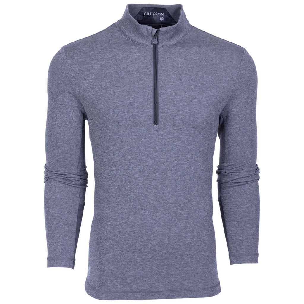 Greyson Men's Smoke Heather Sequoia 1/4 Zip with custom embroidery is a great and fashionable way to cuddle up or get active while still looking amazing. Constructed from Italian fabric, this windproof shell has an athletic fit great for the course, perfect for a morning run, or going about daily errands. Place an order today.