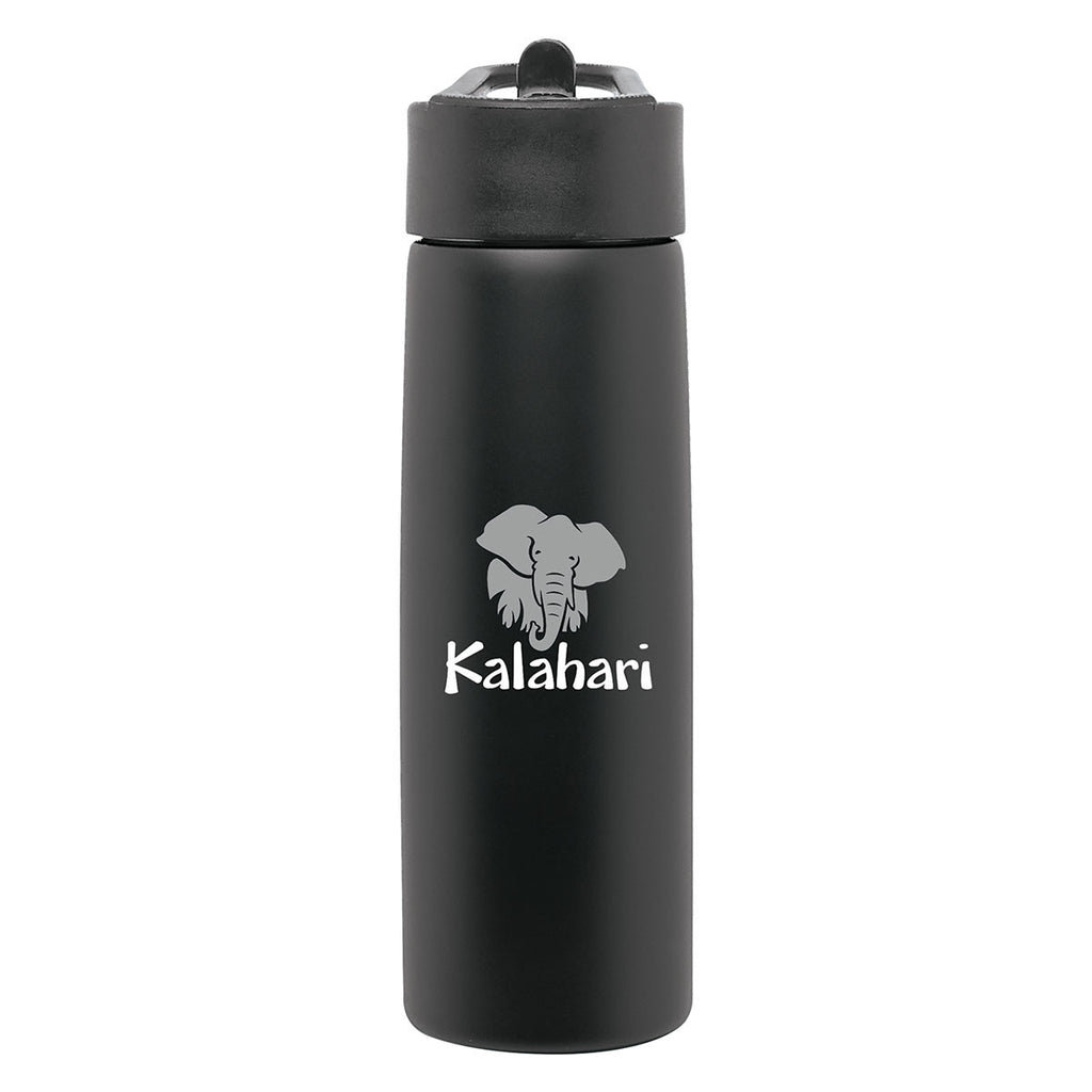 Now here's a stainless steel bottle that makes a bold statement. You might think that's because this H2Go Matte Black Hydra Stainless Steel Bottle 48 oz looks bold on the outside, but consider what's going on inside as well. Here we have a single wall construction, threaded lid, flip spout for easy drinking, and even an inner soft straw to keep everything tightly under control when you're on the go. That's a bold statement for anyone who wants to keep a cool refreshment on workouts, hikes, and other adventures. Pep it up even more with your custom logo added to this stainless steel bottle.