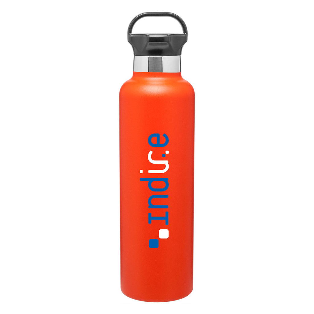 Why name the H2Go Matte Orange Ascent Stainless Steel Bottle 25 oz the "Ascent"? Maybe it's because it's a bottle that goes great with you as you ascend a hill on a hike-it does, after all, feature a cap loop for that very purpose. But we think it's more about ascending to a new level of bottle-ness: there is an insulated lid here, 18/8 stainless steel construction, and will even keep your drink cold or hot for hours and hours. That's not just something any old bottle can do. And with your event, business, or team logo on this bottle, you can ascend to a whole new level of branding as well.