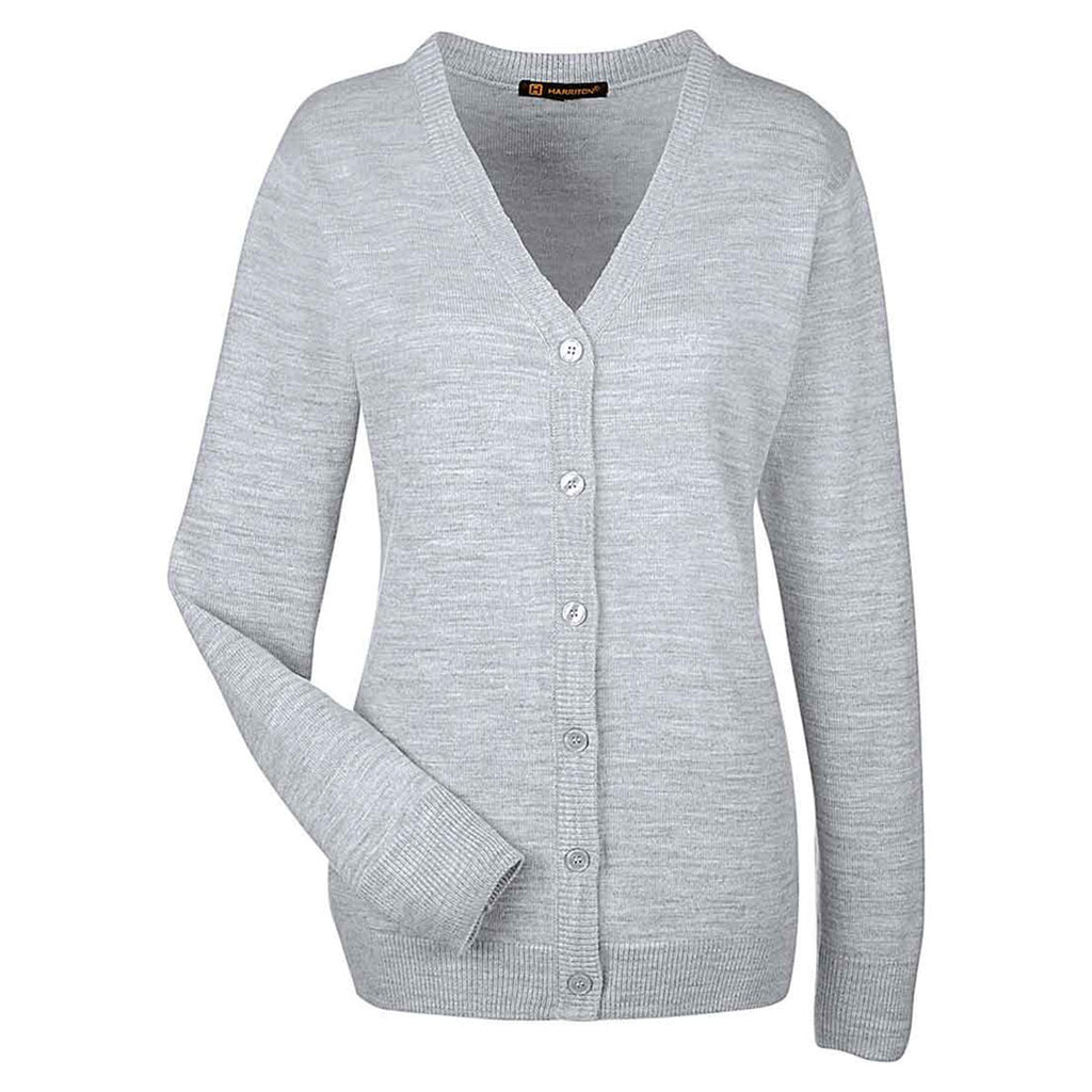 Harriton Women's Grey Heather Pilbloc V-Neck Button Cardigan Sweater