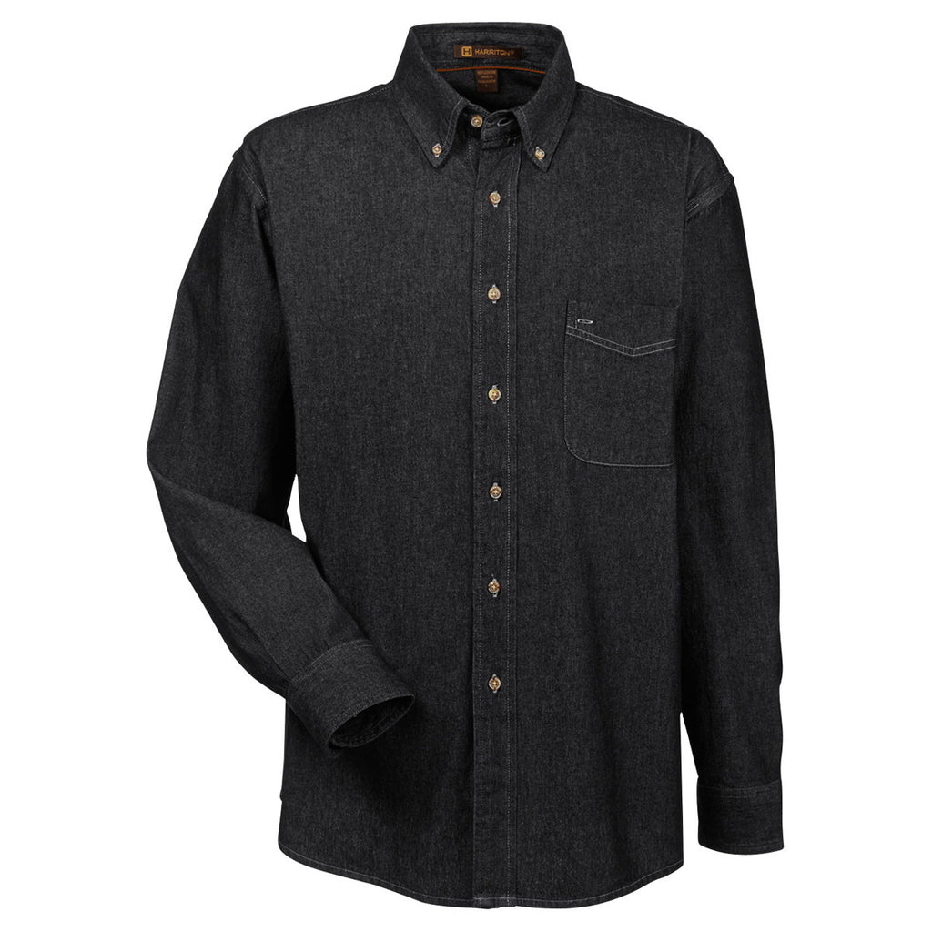 Harriton Men's Washed Black 6.5 oz. Long-Sleeve Denim Shirt