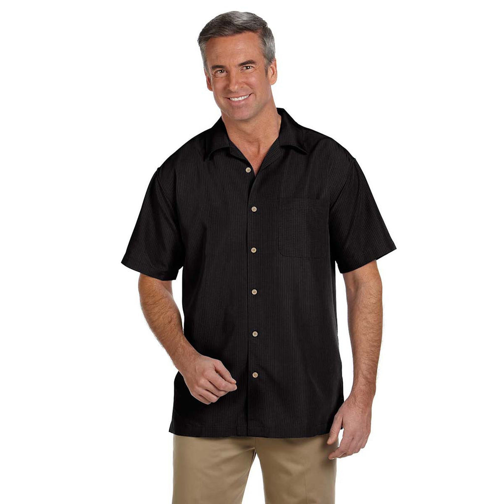 Finely textured to deliver a sleek design appearance, the Harriton Men's Black Barbados Textured Camp Shirt features 70% rayon and 30% polyester to create an indestructible corporate garment. Rayon and polyester combine to prevent rips and tears from rendering the multi-purpose shirt to the trash heap. Sand washed to create a soft feel, the Textured Camp Shirt never wrinkles to give you a go to apparel for wearing at upscale corporate events. Just remember to add your corporate logo to promote your company to professional peers. The special shadow weave creates a dazzling design that gets you noticed everywhere you go when you run errands.Corresponding Women's Style: Harriton Women's Black Barbados Textured Camp Shirt