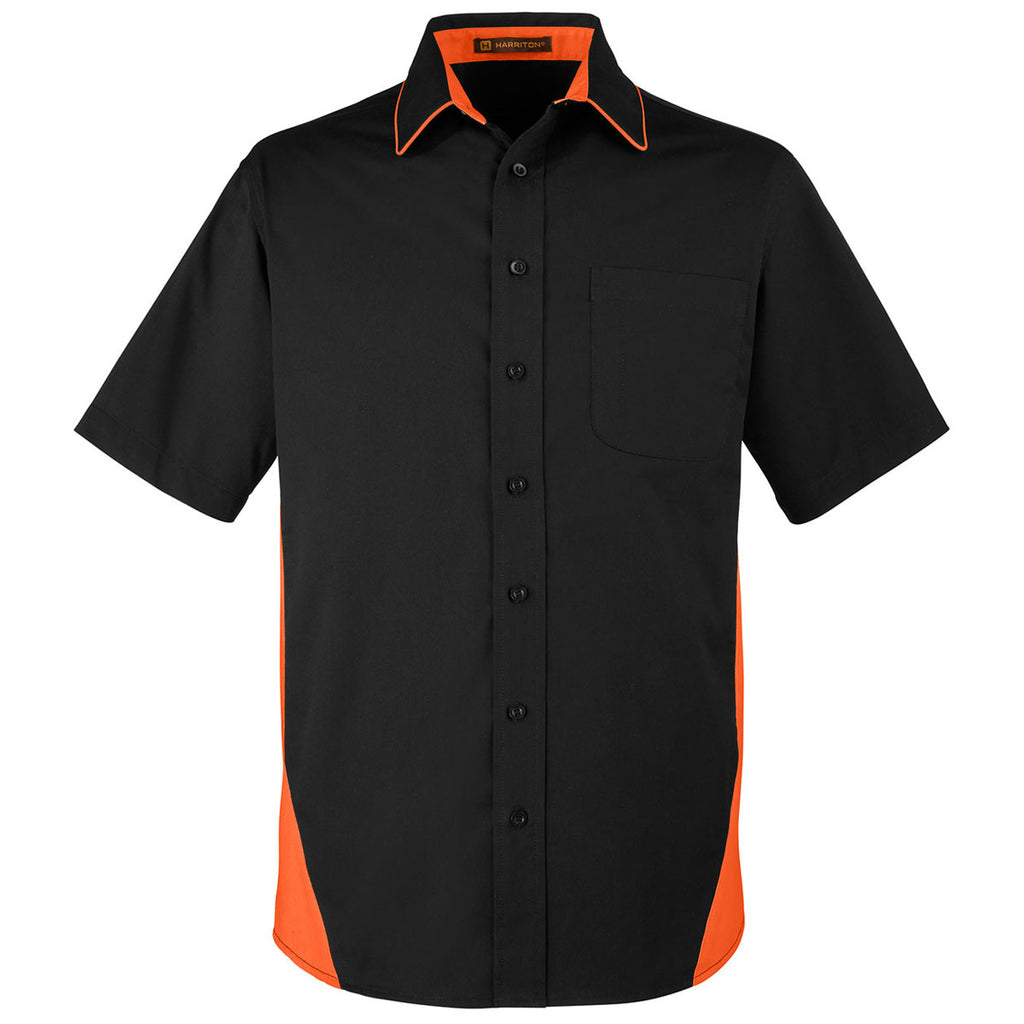 Harriton Men's Black/Team Orange Flash Colorblock Short Sleeve Shirt