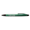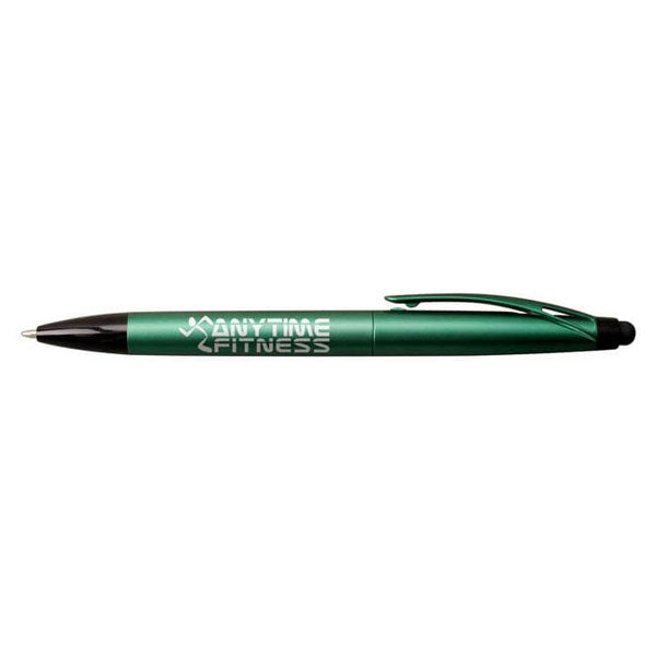 Corporate colors and sophisticated eye-catching metallic finish transform this twist retraction Hub Pens Green JayKay Stylus ballpoint pen into a full-grown corporate writing instrument. It strokes smoothly on touchscreens thanks to its built-in stylus. A generous imprint area ensures your company's logo or name stands out and gets noticed with every pen stroke.