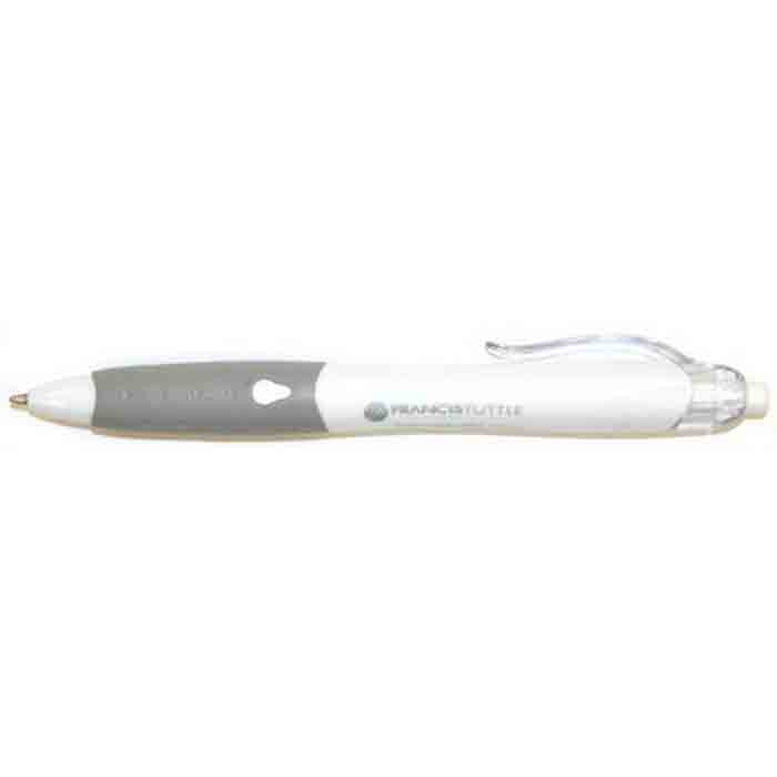 Push a button to eject or retract a Hub Pens White Piper Pen tip that consistently delivers ink on all types of writing surfaces. Ballpoint quality writing keeps you on top of taking notes during business seminars and conferences. Market your company by giving the pen away on customer and employee appreciation days. All you have to do is add your corporate logo to spread the word about your company in the community. Screen printing makes it easy for potential customers to recognize your brand. The raised rubber grip prevents finger and hand pain that results from frequent use of the pen.
