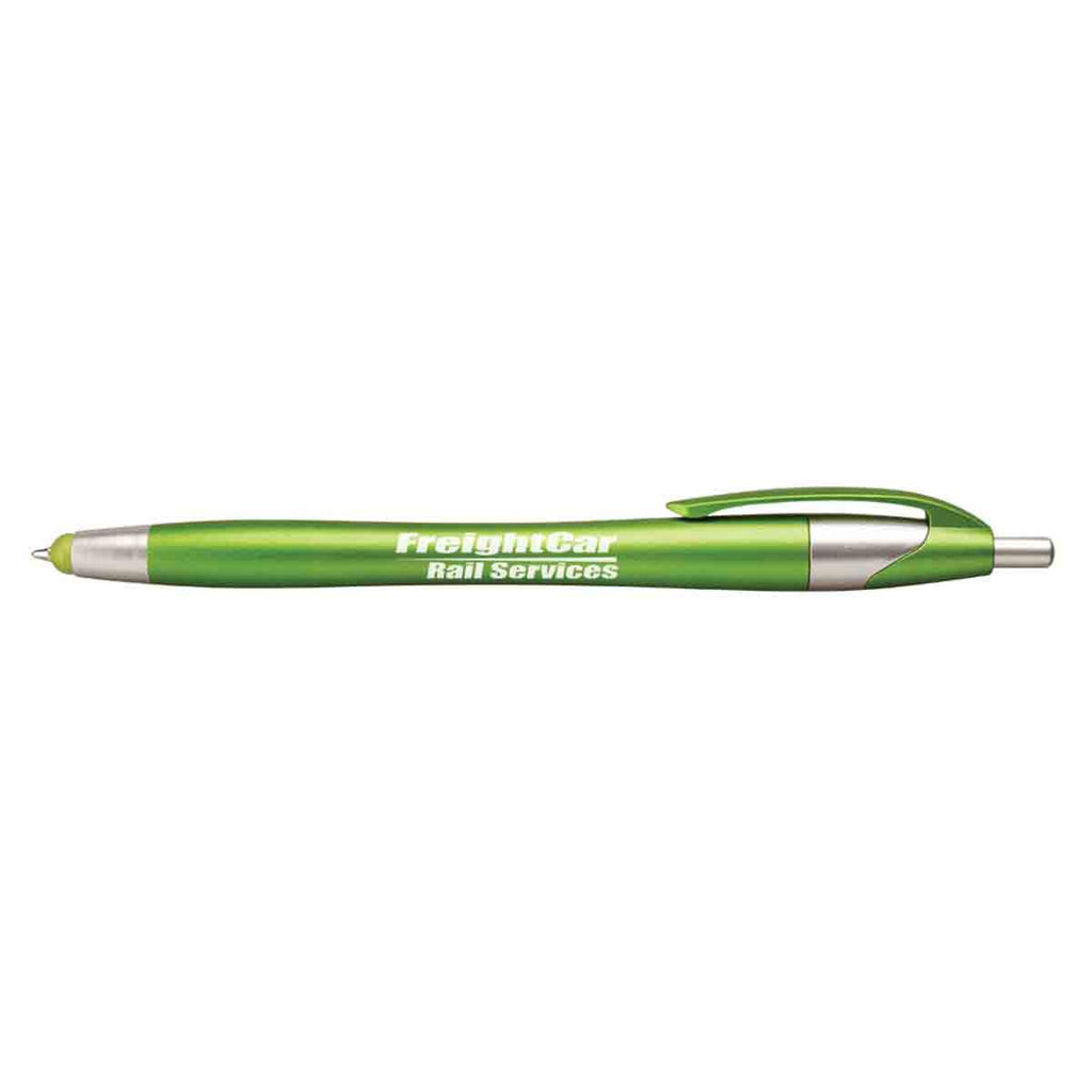 Push retractable action ensures you always see a tip pop out of this popular Hub Pens Green Javalina Spring Stylus pen designed and manufactured by Hub Pen. The highly durable tip delivers even applications of ink to prevent splotches from making your handwritten notes unrecognizable. Hub Pen ink also never bleeds into paper or other types of writing surfaces. The functional stylus gives you the flexibility to send electronic messages to colleagues back at the home office. Soft rubber molded on the stylus tip never scratches or smudges sensitive capacitive touchscreen surfaces. Attach your company logo to attract the interest of customer prospects.