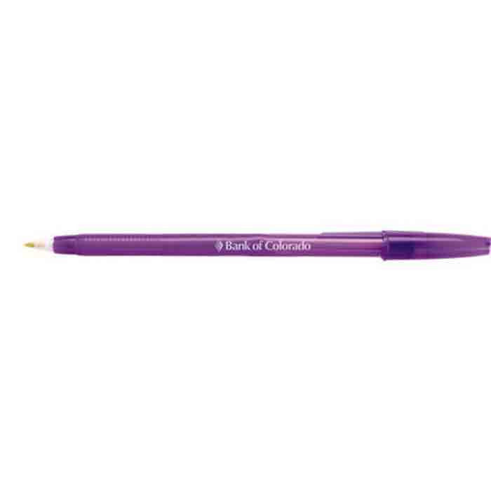 With a unique sculpted clip, the Hub Pen writing instrument secures the Hub Pens Purple Translucent Stick Pen to a shirt or pants pocket, as well as a pocket in the interior of your briefcase. The barrel design includes a wide part of the barrel where Hub Pen has an imprint area. Take advantage of the imprint area by attaching a custom logo that potential customers recognize as your company emblem. Bright translucent colors provide an attractive background for the striking accents. All of the great features do not break the company budget.