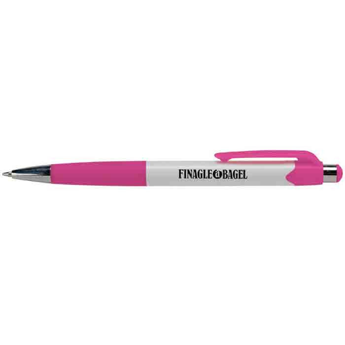 Push a button to eject or retract a Hub Pens Pink Mardi Gras Jubilee Pen tip that consistently delivers ink on all types of writing surfaces. Ballpoint quality writing keeps you on top of taking notes during business seminars and conferences. Market your company by giving the pen away on customer and employee appreciation days. All you have to do is add your corporate logo to spread the word about your company in the community. Screen printing makes it easy for potential customers to recognize your brand. The raised rubber grip prevents finger and hand pain that results from frequent use of the pen.