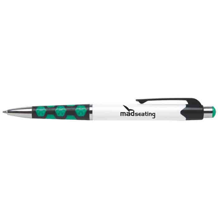 Hub Pen typically creates a large, imprint area on its selection of Hub Pens Green Mardi Gras Hex Pen to produce the ultimate promotional gift for savvy marketers. Simply attach a custom logo on the large imprint area and enjoy increased awareness of your company during weeklong business trips. Dependable push retractable action always delivers the rugged tip that applies even coats of ink on paper and other writing surfaces. As the most colorful addition to the Hub Pen inventory, you can expect to enjoy ultra-smooth writing for all business occasions. Logoed corporate gifts offer you an affordable way to generate buzz for your products and services.
