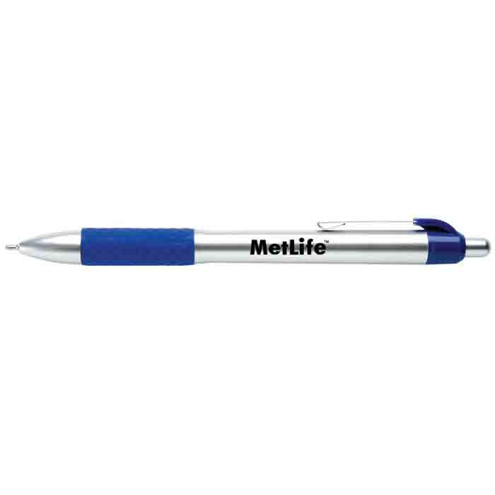 Push a button to eject or retract a pen tip that consistently delivers ink on all types of writing surfaces. Ballpoint quality writing keeps you on top of taking notes during business seminars and conferences. Market your company by giving the Hub Pens Blue Maxglide Click Chrome Pen away on customer and employee appreciation days. All you have to do is add your corporate logo to spread the word about your company in the community. Screen printing makes it easy for potential customers to recognize your brand. The raised rubber grip prevents finger and hand pain that results from frequent use of the pen.