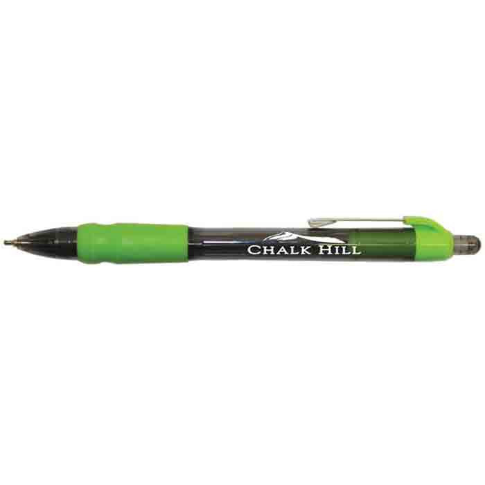 The lightweight tropical themed Hub Pens Neon Green Maxglide Click Tropical Pen makes you feel like you have just landed in the Bahamas. Cheerful color options and a stylish design get you ready to capture everything said during a professional networking event. When you represent your company at a trade show, hand the reliable pen out to potential customers that appreciate high-quality. Each pen features an imprint area to add your corporate logo. Logoed business supplies act as effective marketing platforms for your company. Hub Pen individually wraps each pen in cellophane to ensure product integrity when it comes time to take notes.