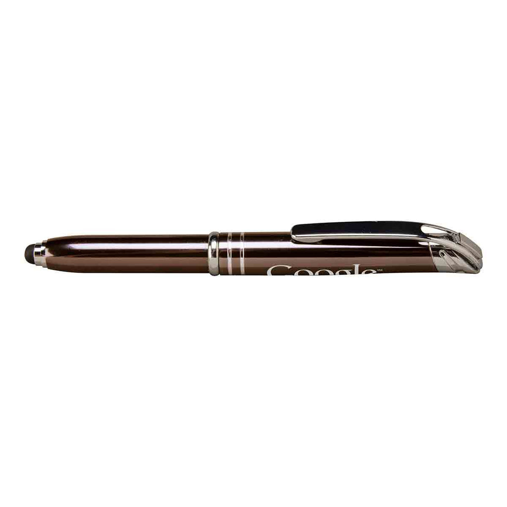 You have enjoyed two-for-one specials. Well, you should jump for joy at the innovative three-for-one special offered by Hub Pen. You use the smooth writing Hub Pens Grey Zentrio Triple Function Pen to take notes at as business conference. Then, you transmit the business conference notes electronically by using the soft rubber stylus. Don't worry: the stylus never scratches sensitive touchscreen surfaces. Finally, you need to find the zip drive in your briefcase. Remove the cap on the multi-purpose writing instrument and shine the LED flashlight on your mobile data storage unit. Add your company logo to expand awareness of your brand at civic events.