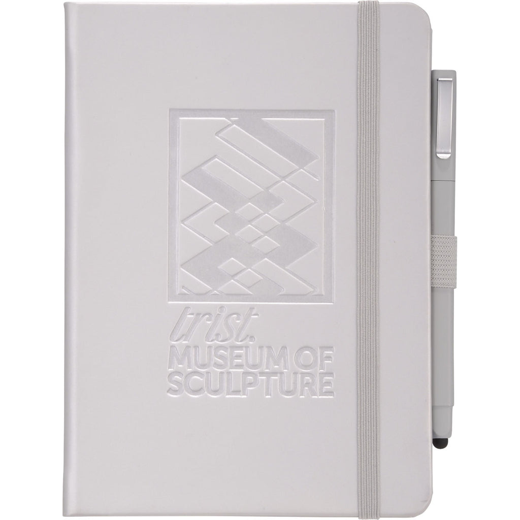 This JournalBooks Silver Vienna Hard Bound JournalBook Bundle Set features a Vienna Hard Bound JournalBook along with an Ambassador Square Ballpoint Stylus. Your logo will look professional and highly visible when placed on the journal's hard cover, which is made from a soft touch material and comes in a variety of attractive colors.