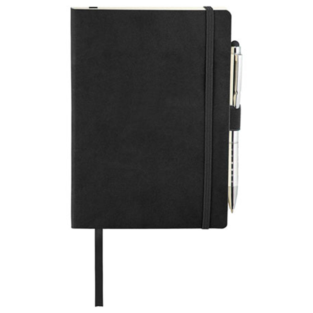 The minimum order for this product is 100 when decorated.Some people take notes occasionally. For them, the bargain-bin notebook might be enough to scribble in a few pages and forget about. But you're a little more serious about note-taking, which is why you've come across this JournalBook Black Revello Soft Bound Bundle Set. This set has everything you need to go from zero to professional-grade note-taker just as quickly as you can open it up. Customize this notebook with your own custom logo right on the front to take special pride in the way you work
