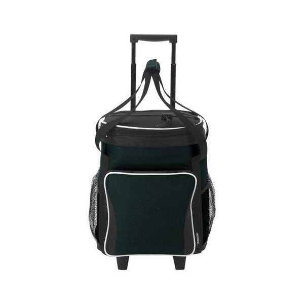 Help your company's customers and employees whoop it up on game day events with this custom-logoed Koozie Charcoal Tailgate Rolling Kooler. Whether its tailgate outside the stadium or a party at home, this rolling cooler will keep food and drinks cool thanks to its heat-sealed PEVA liner. Featuring a retractable handle, roomy main compartment and extra pockets, this cooler is ideal for picnics or corporate meet-ups.