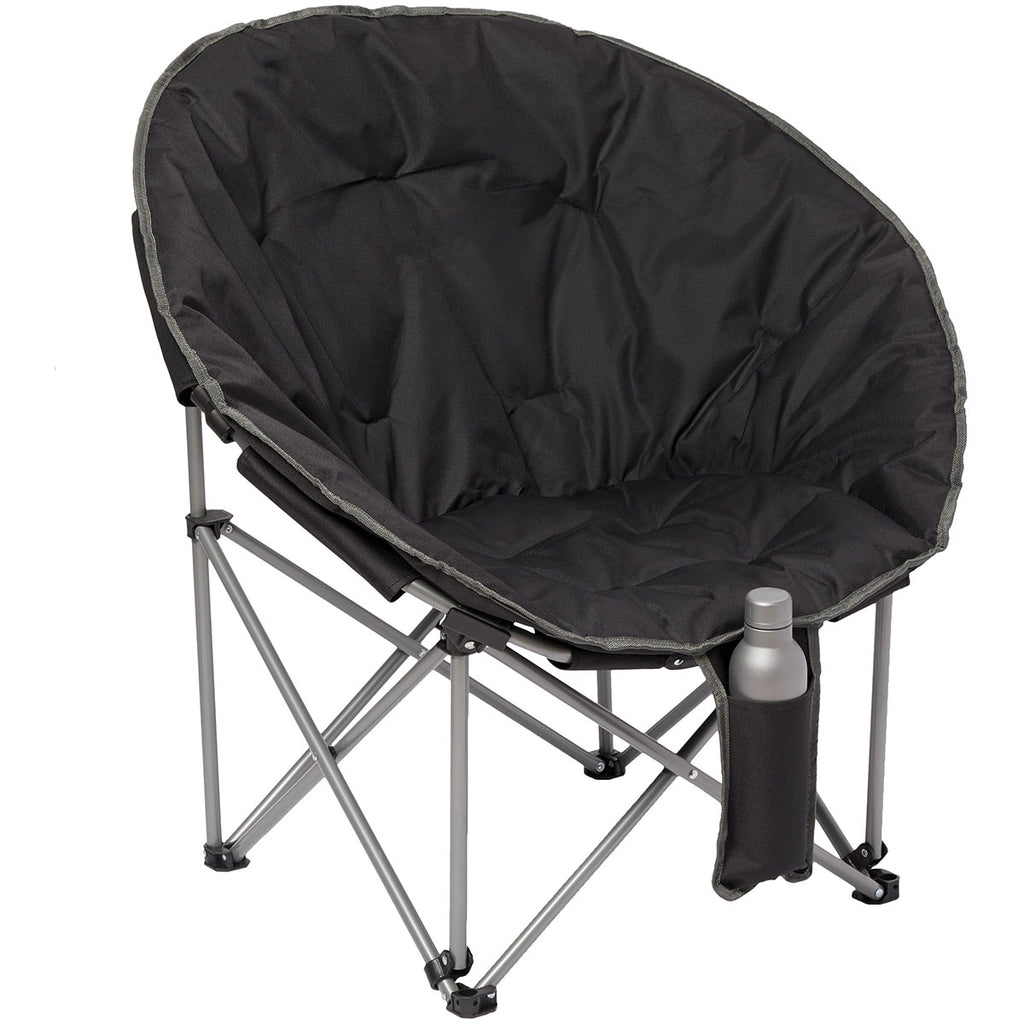 The Leed's Black Folding Moon Chair is a fun, unique promotional item that will make an excellent event giveaway item or branded corporate gift. Made from a durable polycanvas material, this padded chair features a front tech pocket and measures 25.6" X 20" X 20". Add your custom logo to increase the visual impact.