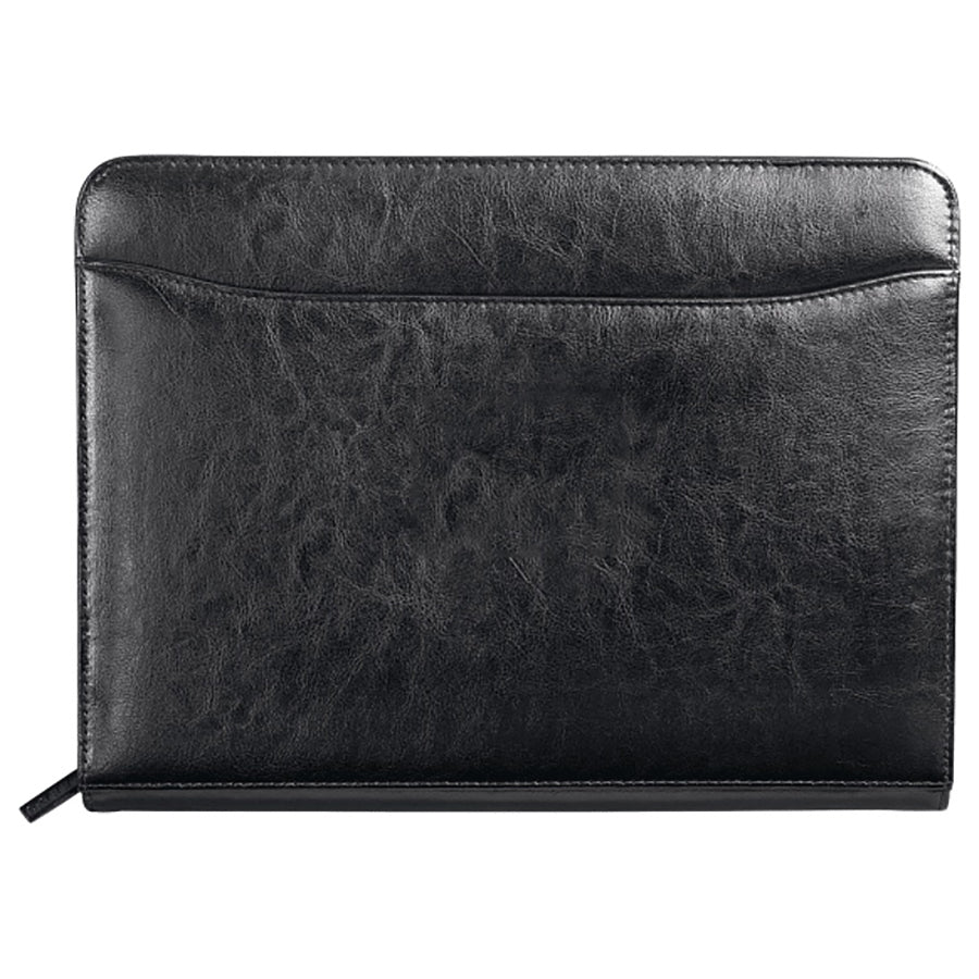 Leed's Black Renaissance Italian Style Leather Zippered Padfolio with FSC Mix Paper