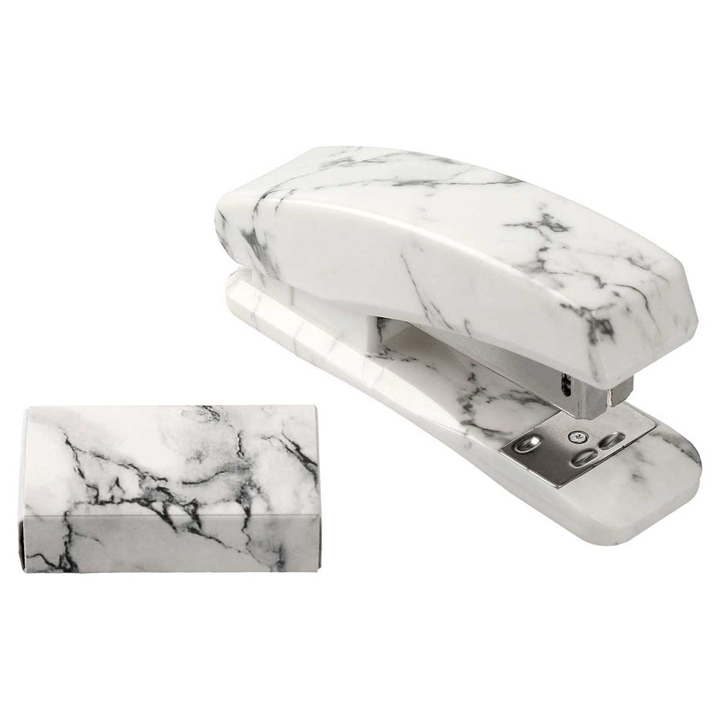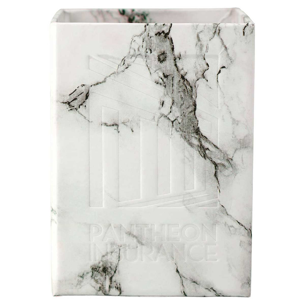 Fashioned up with your custom logo, these Leed's Marble 5 Piece Faux Marble Desktop Sets can turn into wonderful gifts for your clients and employees, or prepped as event giveaways for trade shows and recruiting events. The marbleized set includes a pen cup, stapler, staple refills, hole puncher and a note pad - all designed to style up your office or study desk.