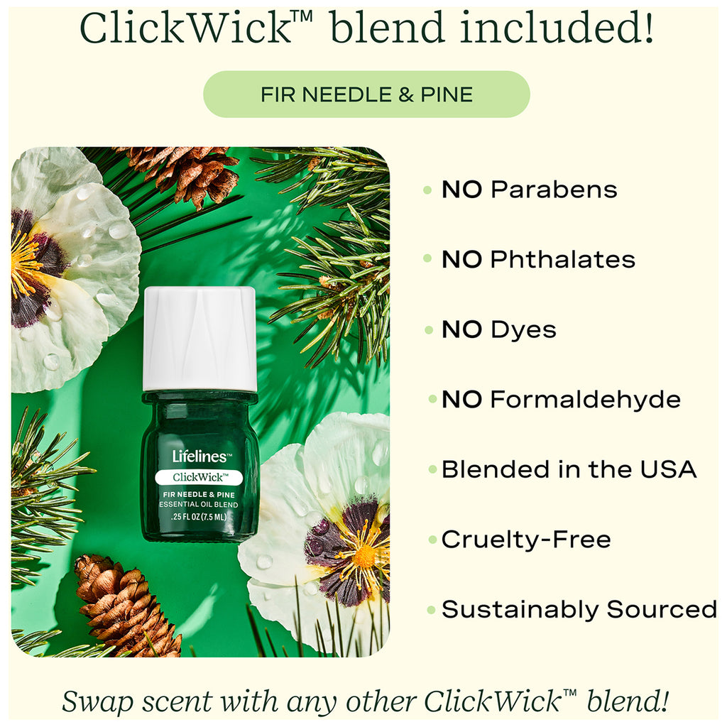 - No watering, sun, or re-soiling needed! Includes bottle of Lifelines Essential Oil Blend with innovative ClickWickdesign, allowing bottle to click into the bottom of the planter for a seamless aroma experience.