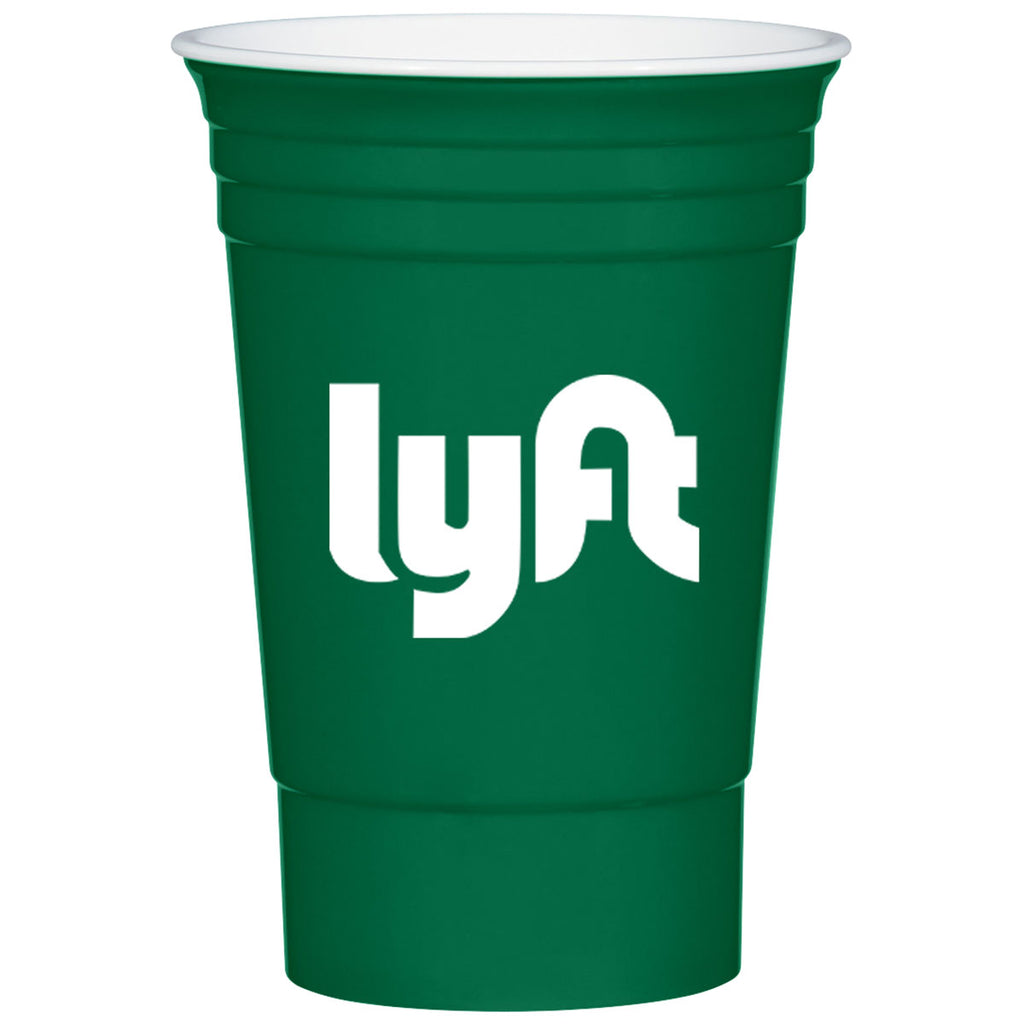 Hit Forest Green/White The Cup with a custom logo will keep your party going. This silkscreen custom cup is perfect for big events like receptions, family reunions, or tailgating, so everyone knows the host or sponsor. The large 16-ounce size is sturdy, reusable, and available in various color options. Serve your signature drink, or let people choose their own to keep the fun going.