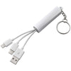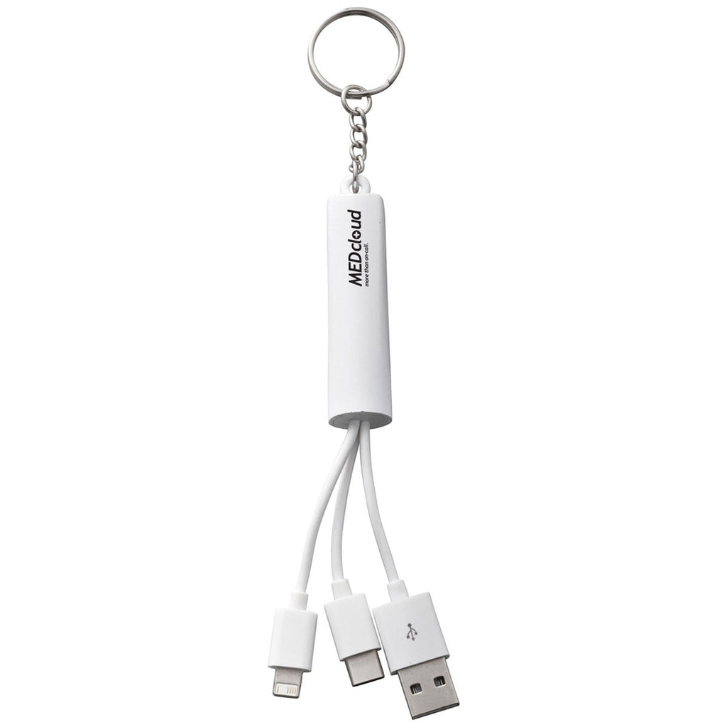 The three points that come out of the Bullet White Route Light Up Logo 3-in-1 Cable help with charging up many items. Connect the unit to a USB port and then use one of the other plugs to charge up an Android or iOS device. The custom-branded design is useful for marketing purposes and can be a good item to give to customers.